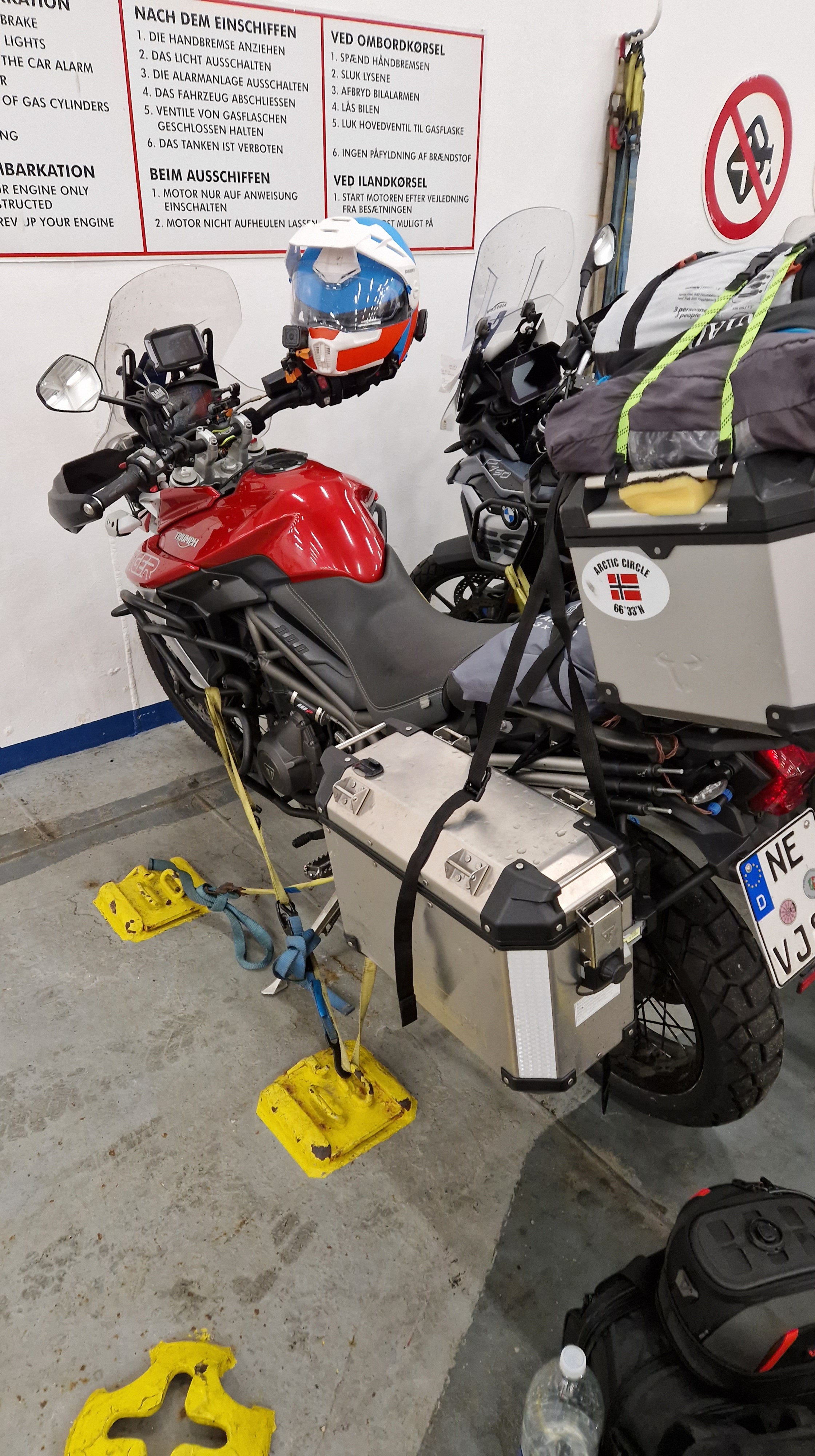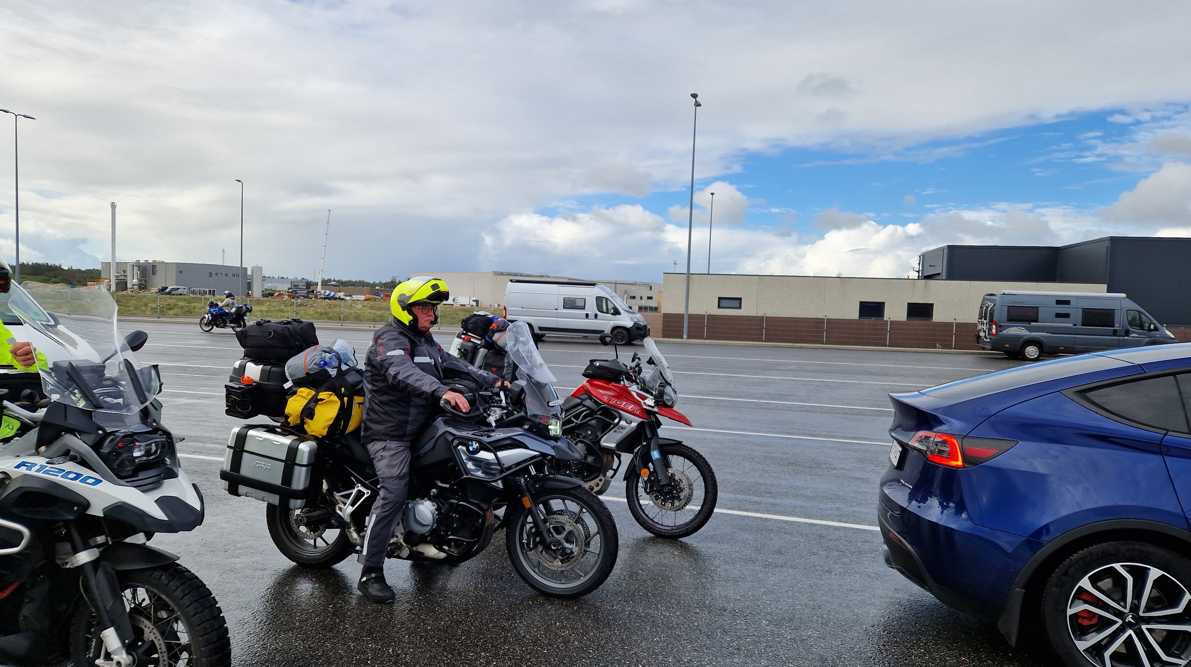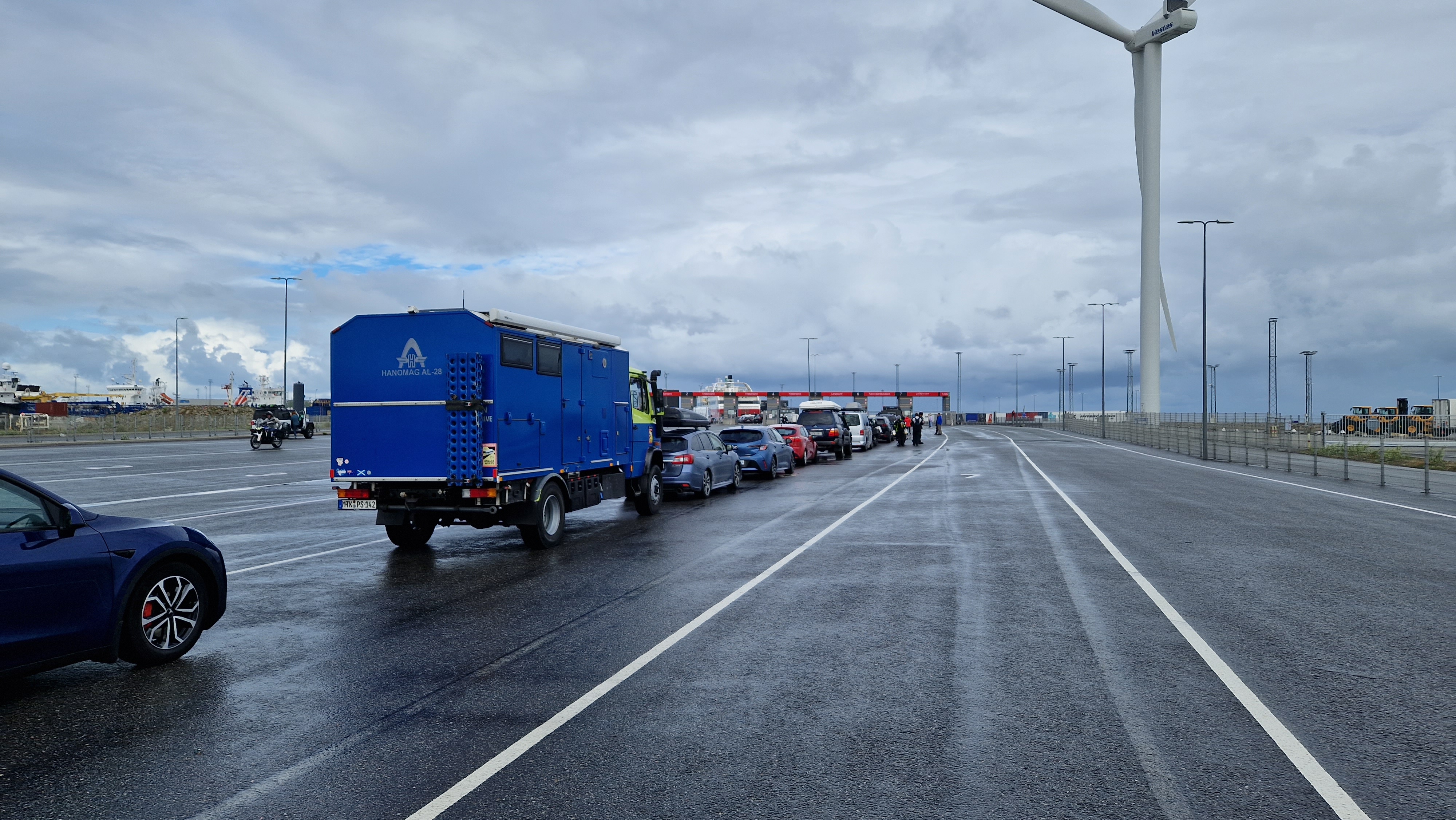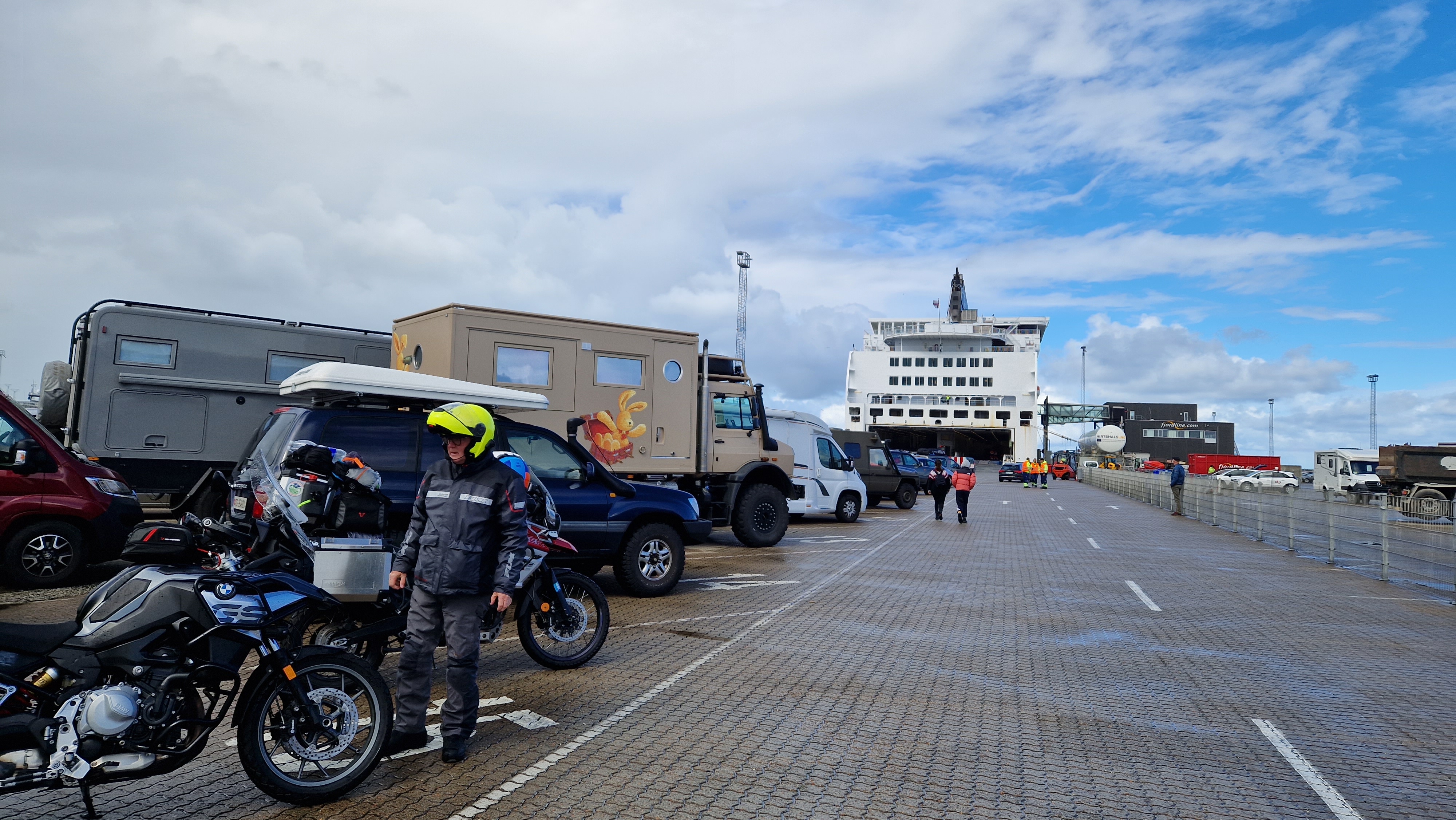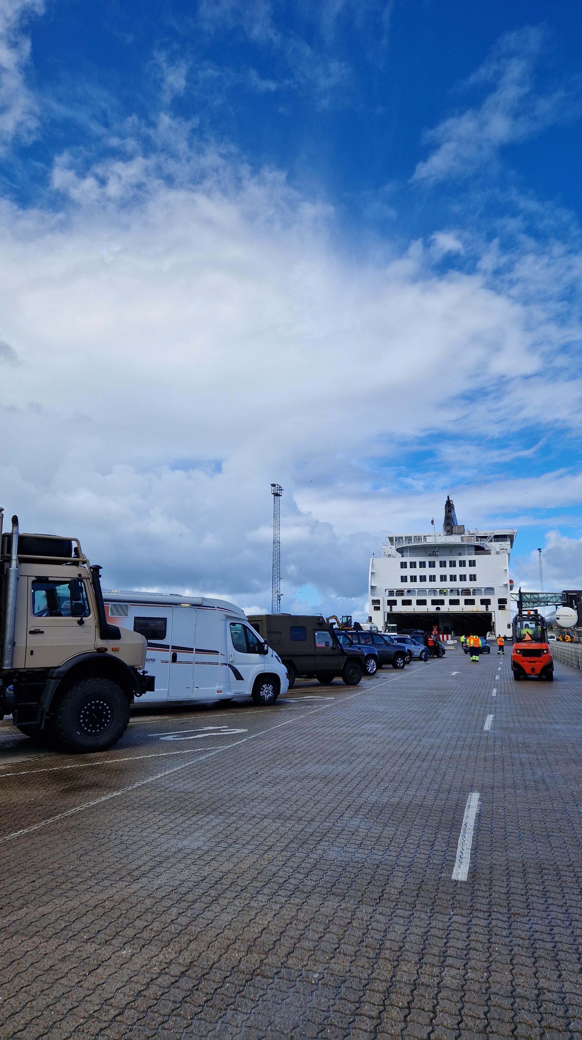 Kurz zusammen gepackt, noch beim Bäcker gefrühstückt und dann zur Fähre. Nach ein paar kurzen Regenschauern beim Warten und anstehen sind wir jetzt an Board…