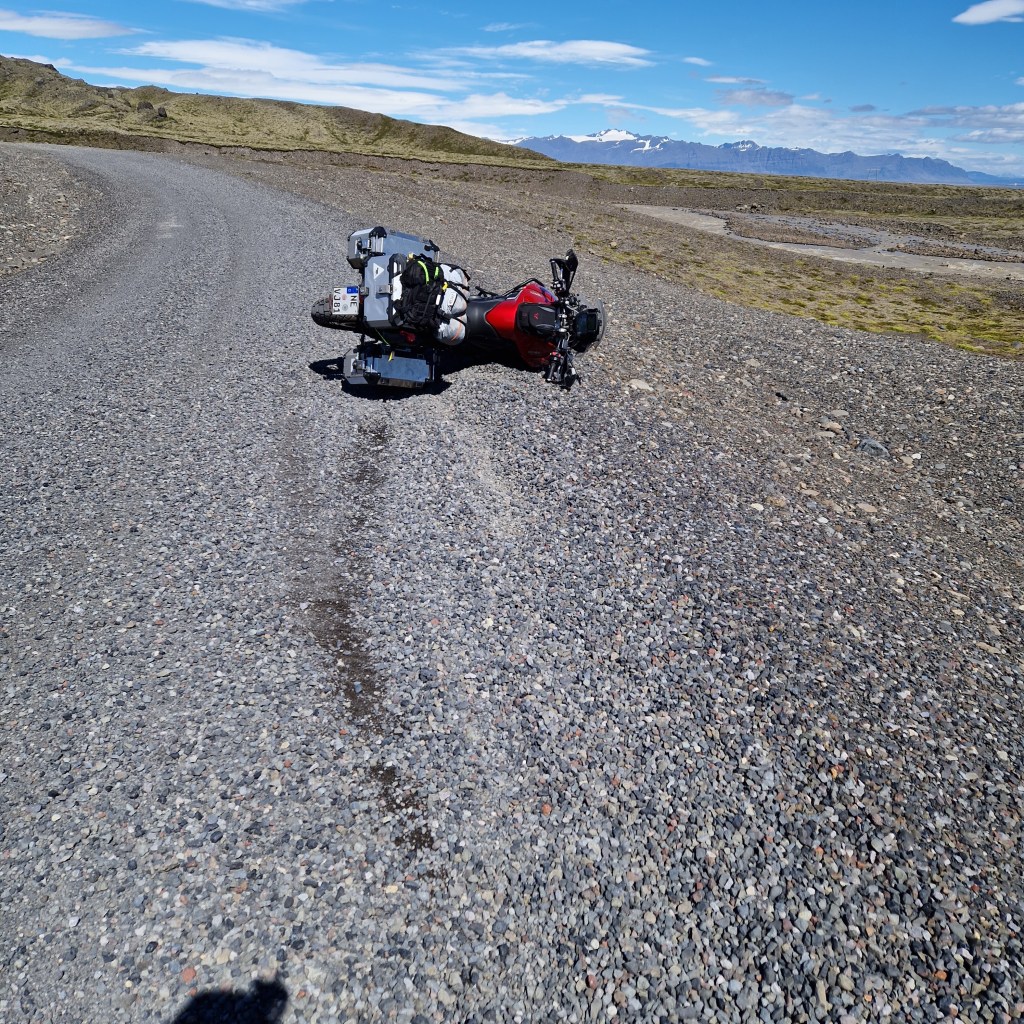 Fangen wir heute mit einer eher ungewöhnlichen Sache an… Meinem Motorrad war müde. Es hat sich deswegen was hingelegt. Die Entscheidung hat es leider ohne mich getroffen während ich noch drauf saß. Nunja sagen wir mal so, es lag nicht am Motorrad. Der tiefe Kies überstieg dann doch mein Können. Aber alles gut.
