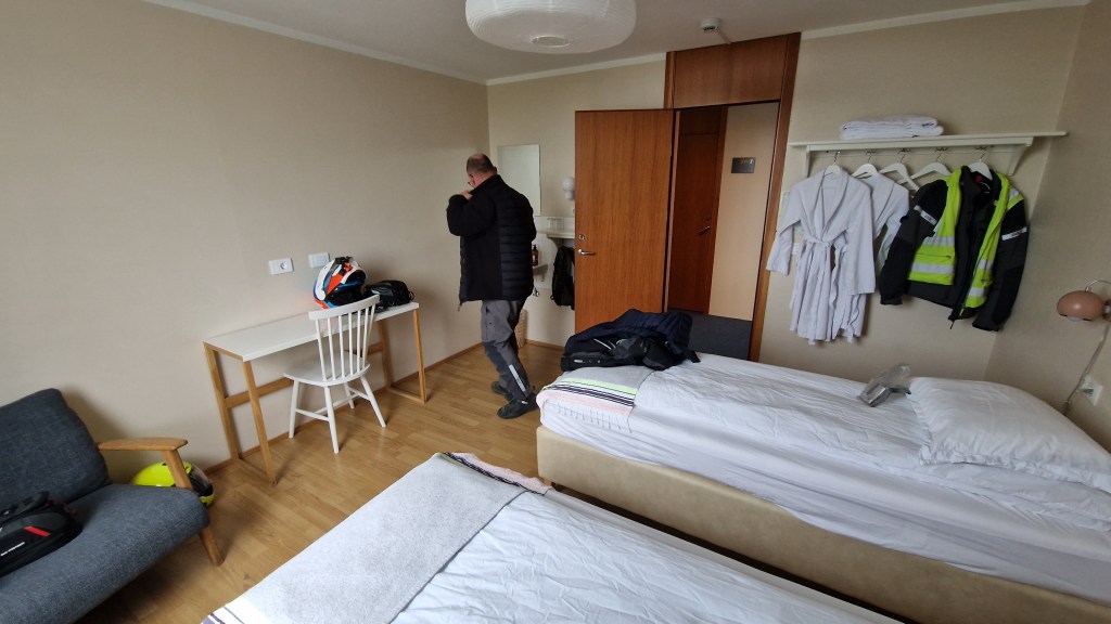 Zum Mittag gab es einen ganz köstlichen Hot Dog. Direkt danach ging es weiter auf die Ringstrasse. Leider spielt das Wetter nur so halb mit und es zieht zu. Geschlossene Wolkendecke, und eine sehr niedrige dazu. Wir kommen der Wolke immer näher. Am Hotel angekommen, sehen wir nicht mehr viel um uns herum.