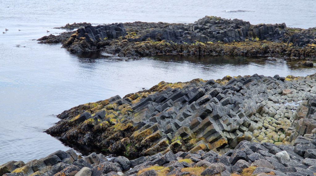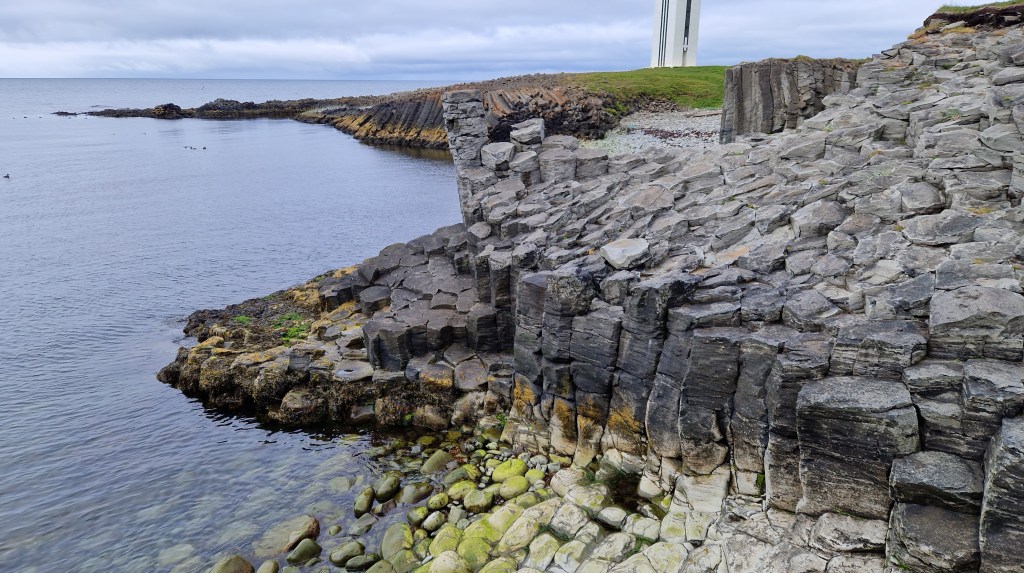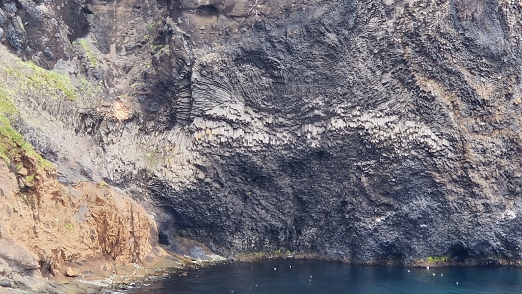 Zweiteres ist eine Steilküste, die aus Basaltstäben besteht. Bis auf ca. 60m Höhe über dem Meer kann man diese Säulen erkennen. Bevölkert wird dieser Felsen von tausenden Vögeln.