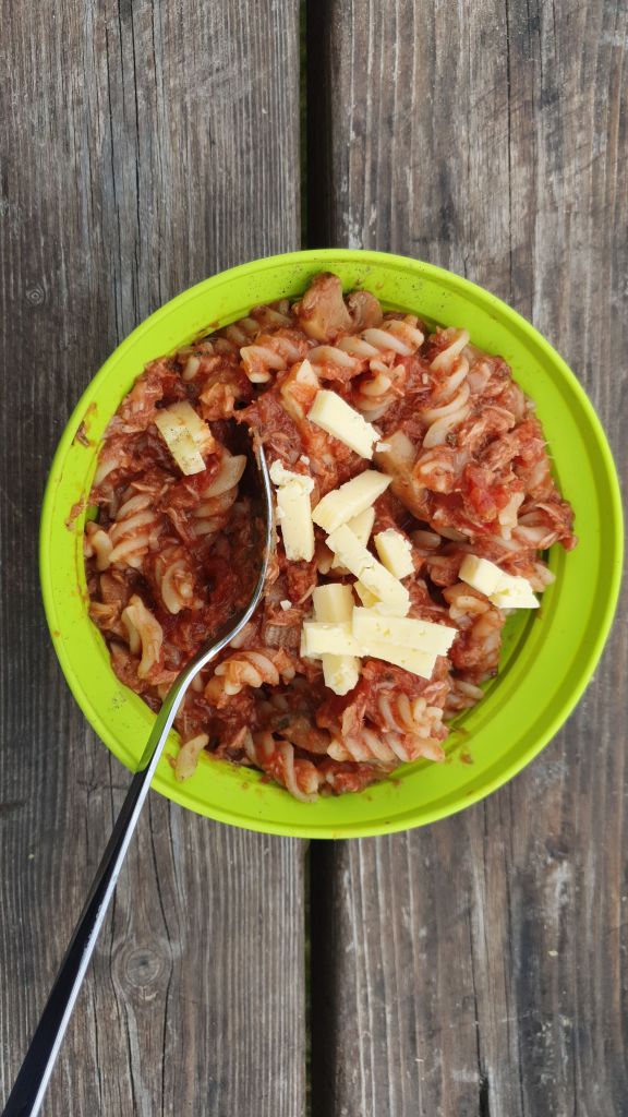 Danach ist ausnahmsweise mal die Campingküche dran. Es gibt Nudeln mit Sauce.