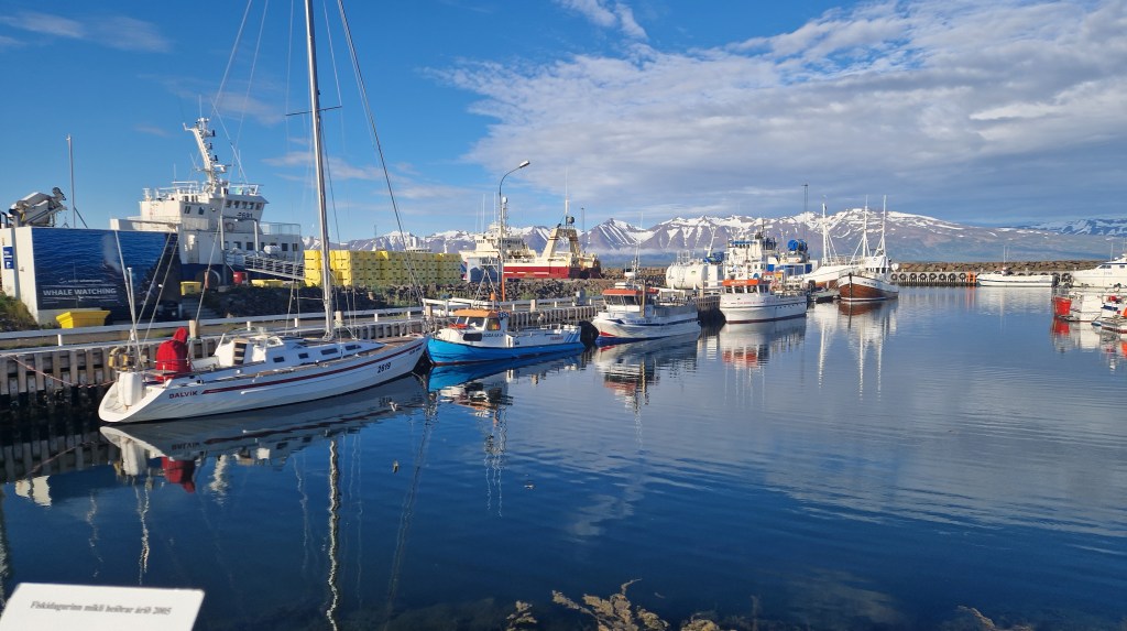 In Dalvik gibt es fast nix. Ein kleiner Hafen in dem wir die Whale watching Tour für morgen buchen, aber sonst finden wir kaum etwas sehenswertes.