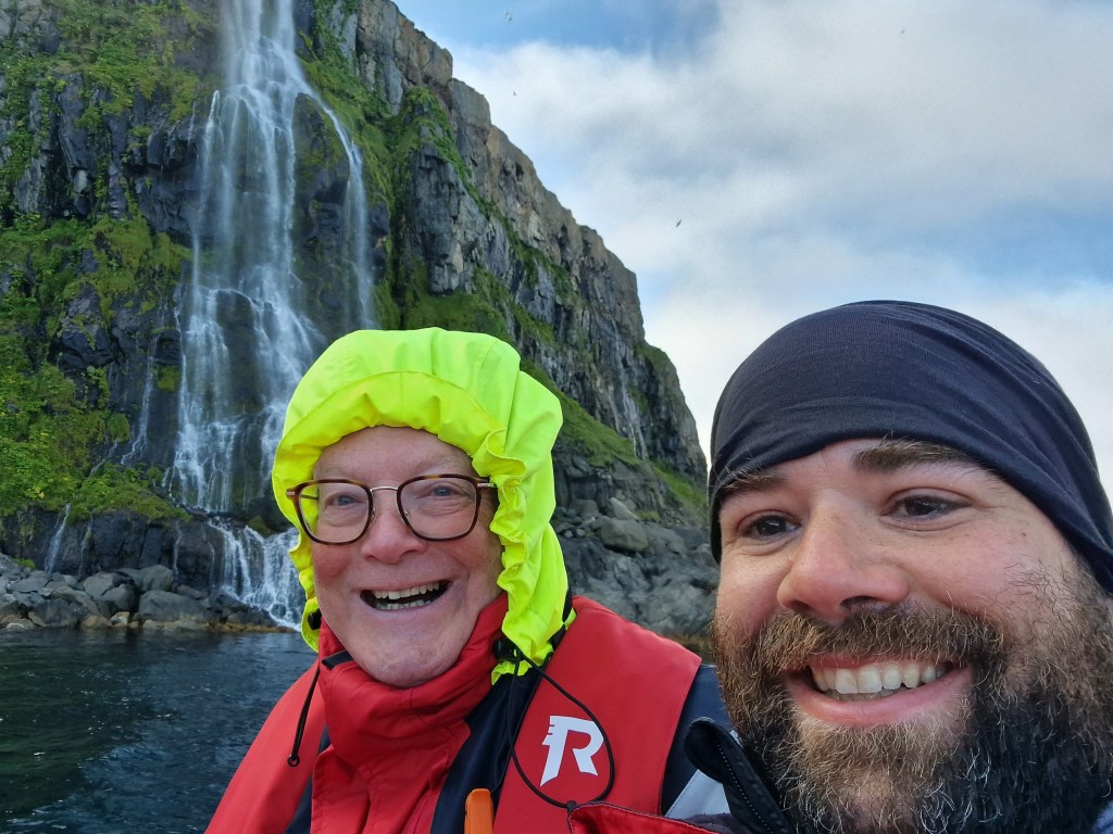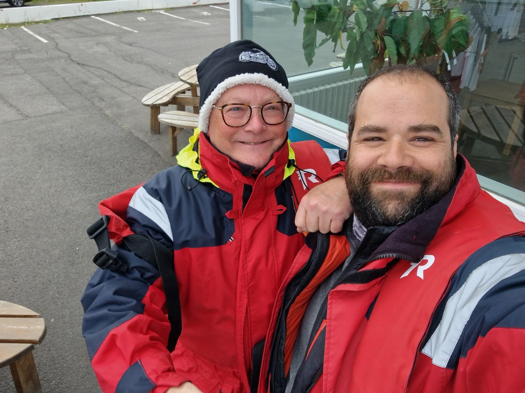 Wir also rein in den Überlebensanzug (mit dem ich auf gar keinen Fall über Bord gehen will). Warm ist uns jetzt schonmal.