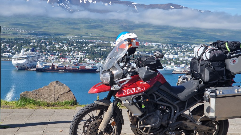 Vorbei gefahren sind wir an Akureyri. Ein kleiner Ort der hier im Norden wohl das Größte ist was Island zu bieten hat, so besteht der Ort mehr aus großen Läden und Industrie als alles andere. Im Hafen liegen drei dicke Pötte und hüllen den ganzen Ort in einen widerlichen Geruch von Schiffsdiesel.