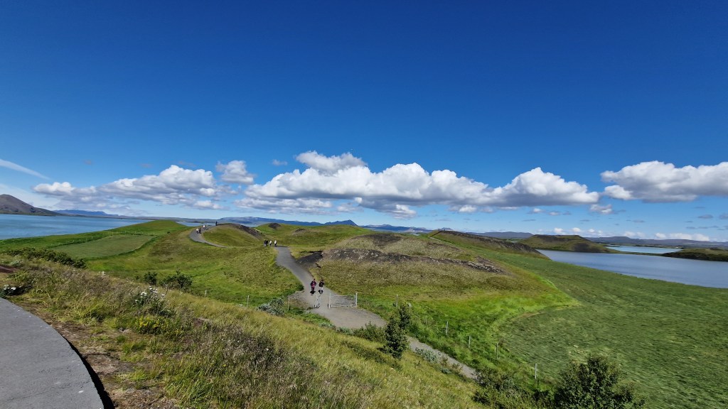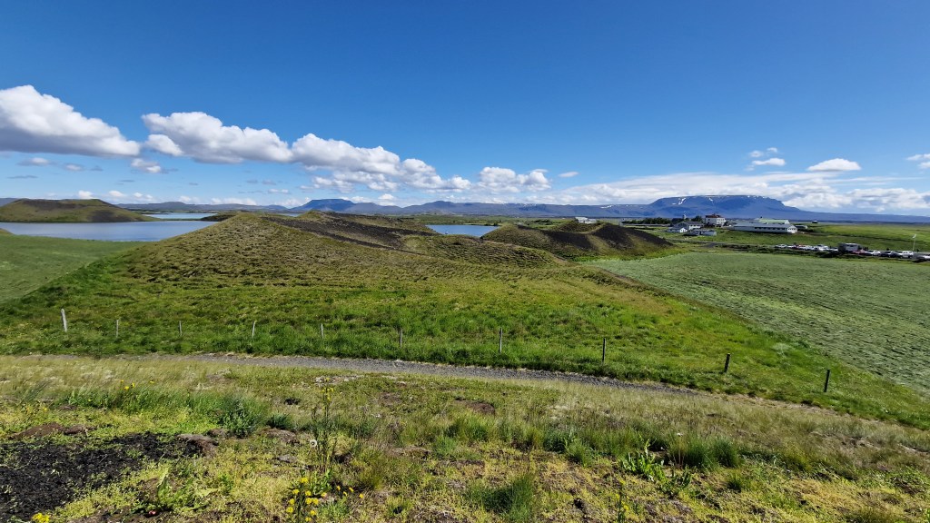 Hier gibt es einen kleinen Vulkanpark der eigentlich für morgen auf dem Programm stand. Aber weil wir zu viel Zeit haben machen wir den Skútustaðagígar heute.