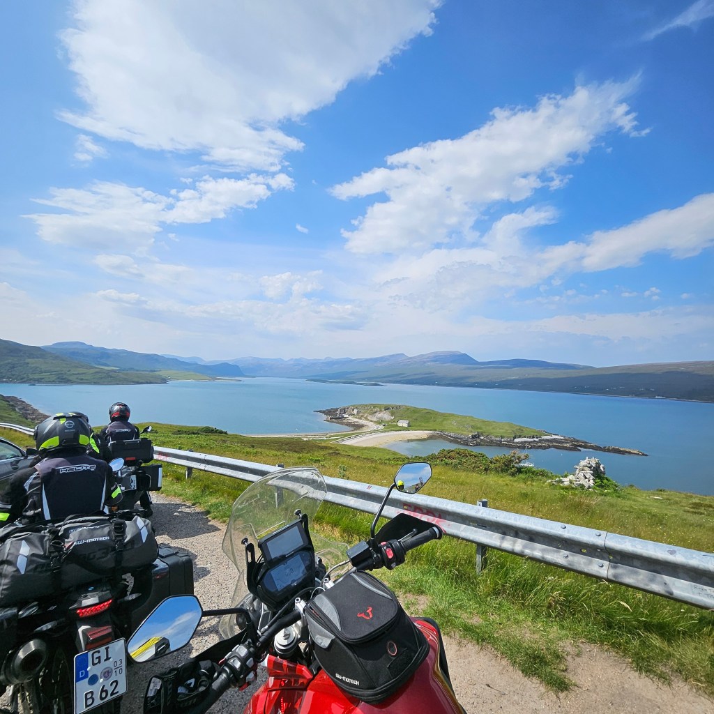 Heute ging es von Thurso nach Ullapool. Ein Navi hätten wir nicht gebraucht, so gab es eigentlich nur eine einzige Kreuzung, an der wir abbiegen mussten…. und die habe ich verpeilt – mit Navi.