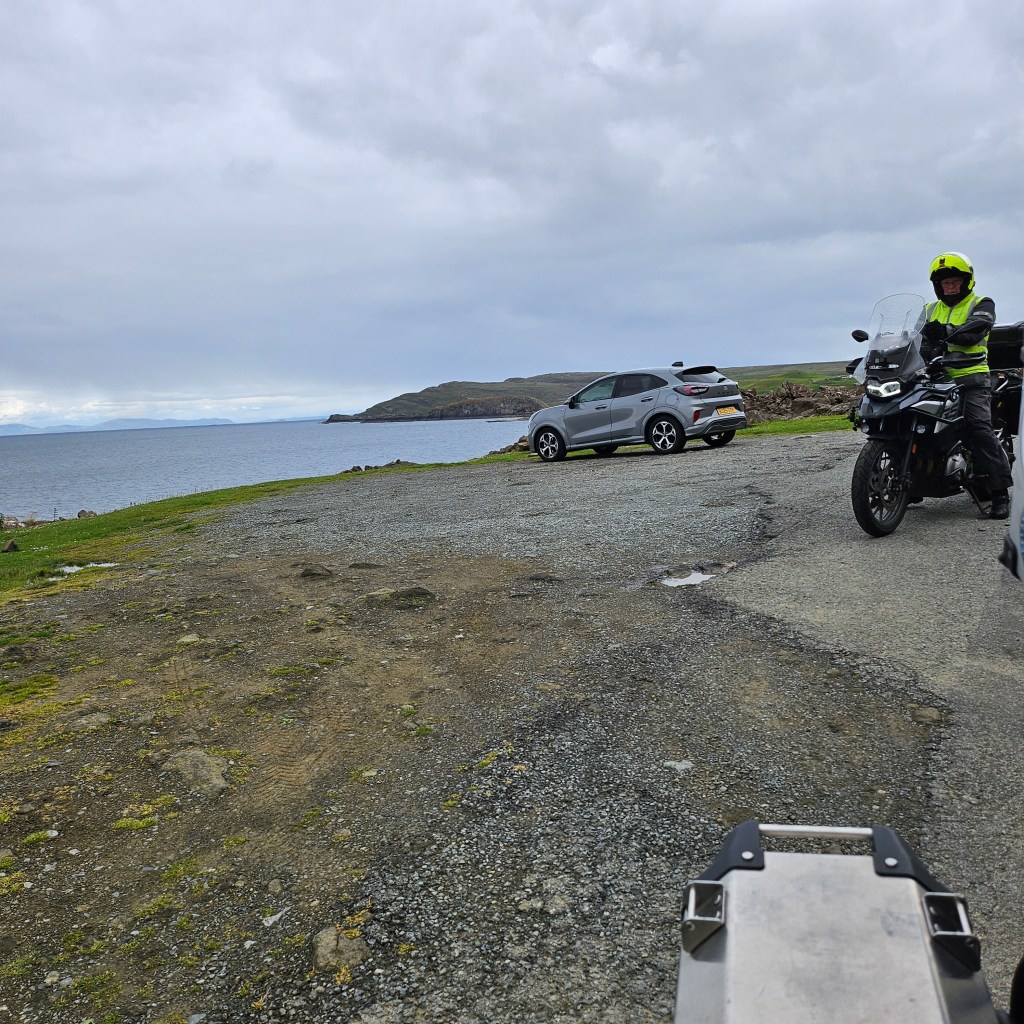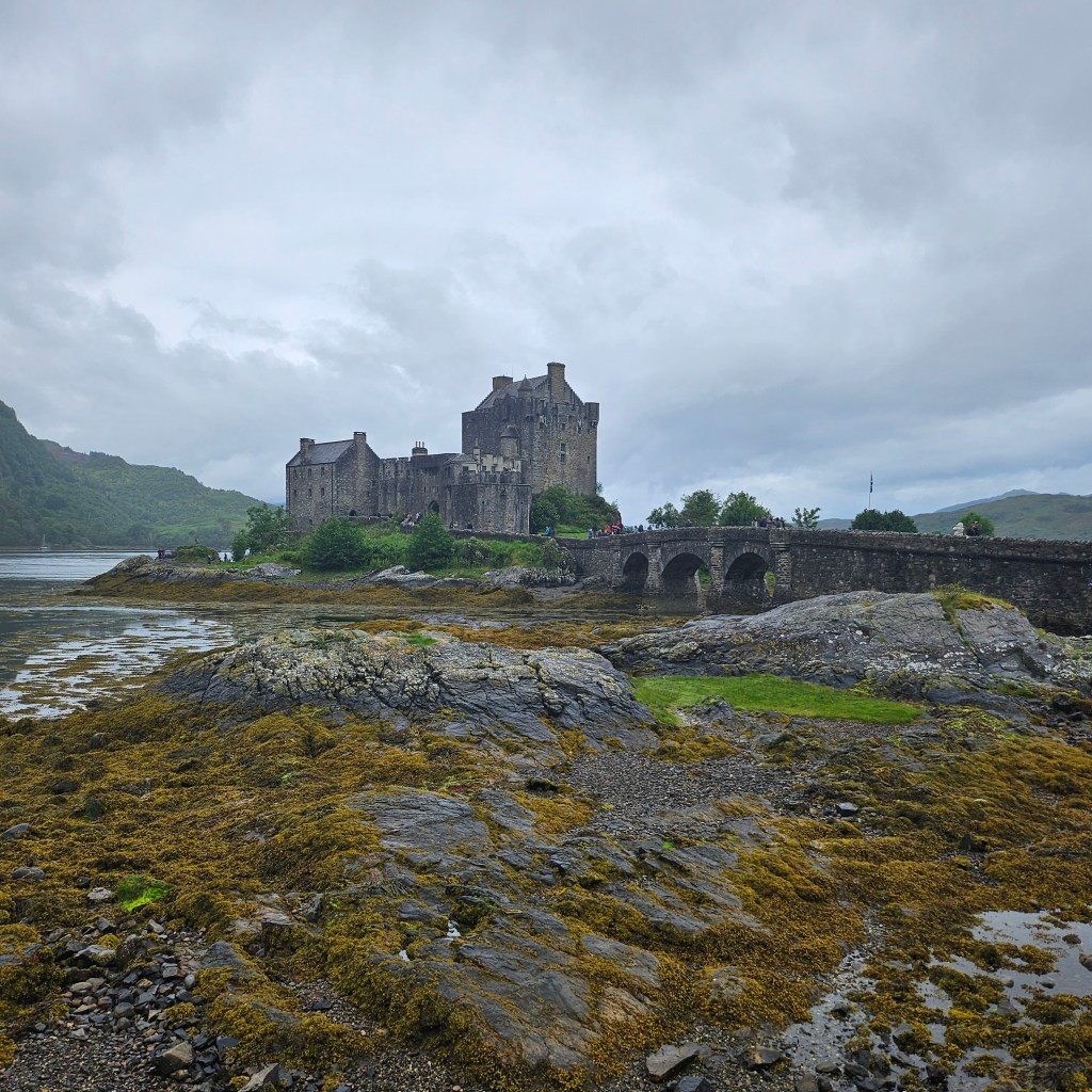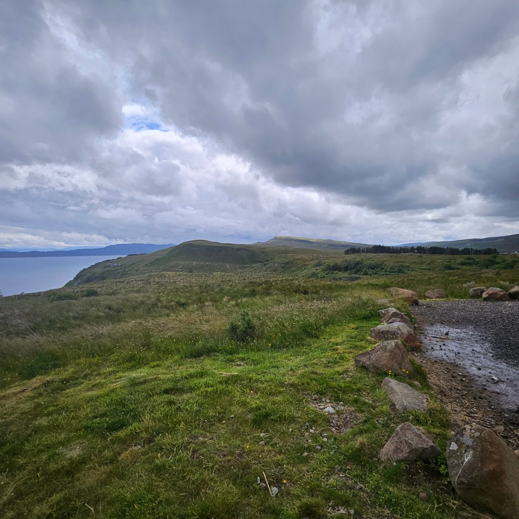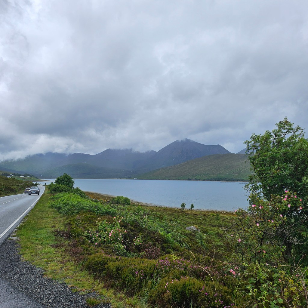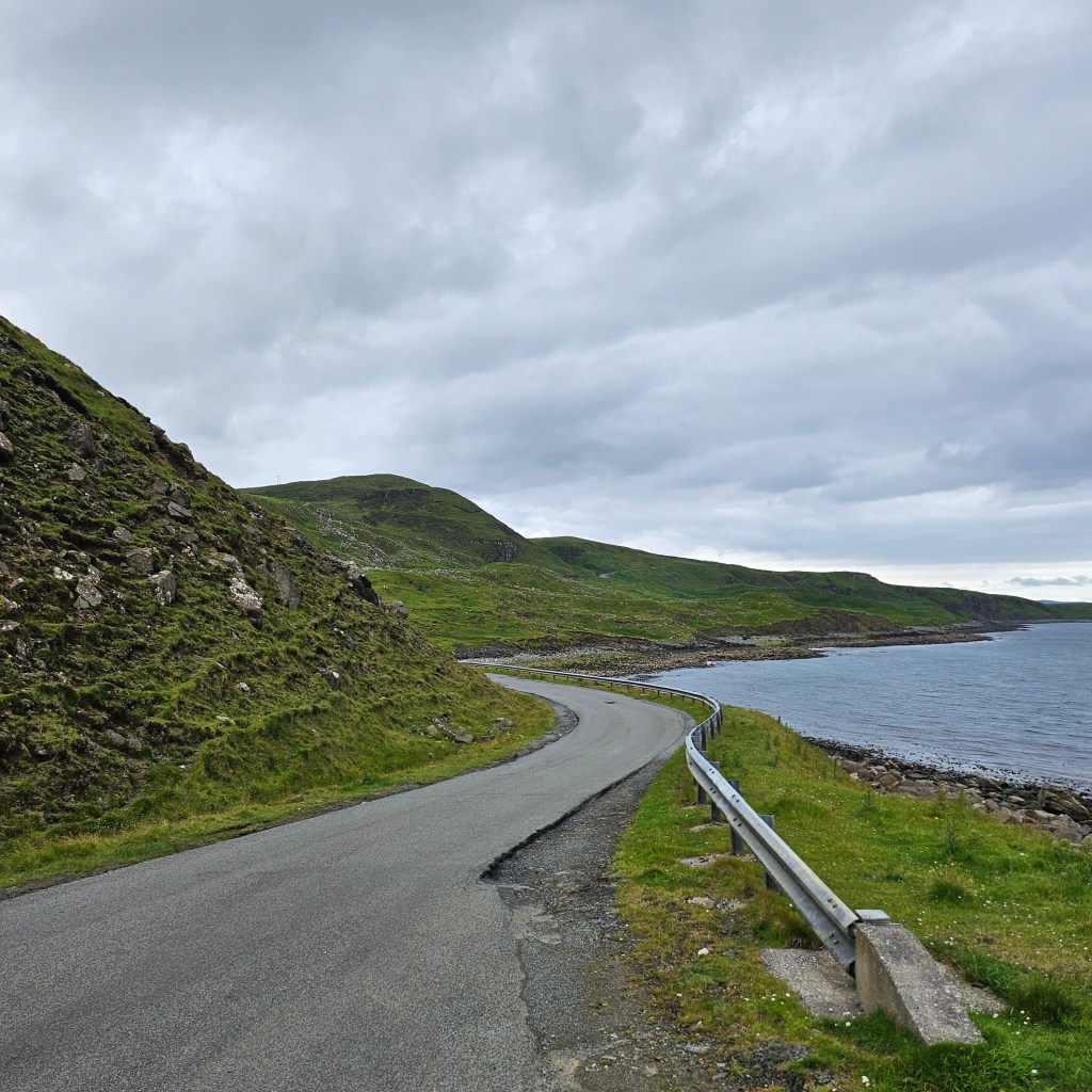 Und die Rundreise beginnt damit, dass wir die Insel verlassen und uns das Castle Eilean Donan anschauen. Von außen, da wir nicht bereit sind, 11 bzw. 12 Pfund zu zahlen. Was wir von außen sehen, reicht uns aus. Kurz danach fahren wir wieder auf die Insel. Es geht an der Nordostküste hoch bis nach Balmaqueen. Der Küstenstreifen ist sehenswert und heute auch mal zu sehen. Ab und zu bekommen wir ein bisschen Regen oder Niesel ab, aber in Summe hält es sich heute sehr in Grenzen. Ein paar der klassischen Touri-Dinge sparen wir uns, weil wir wandern müssten, oder wir die „Schönheit“ nicht sehen. Dank der Single Track Road brauchen wir trotzdem extrem lange, um oben anzukommen.