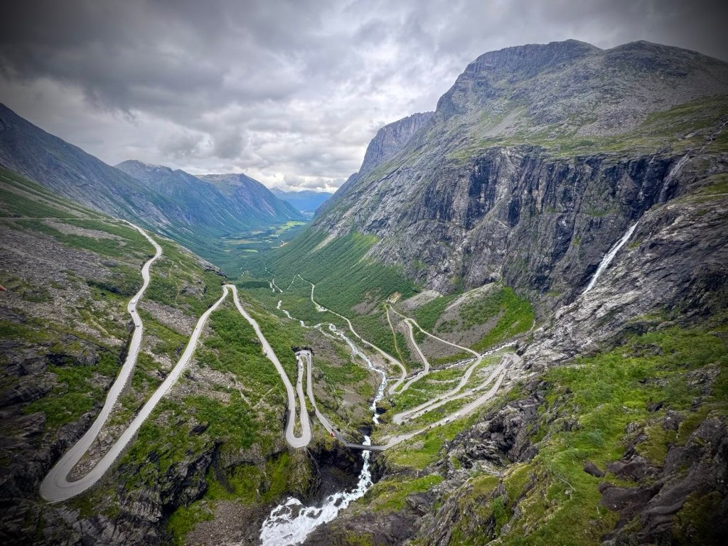 Weiter geht es über diese wunderschöne Brückenformation Richtung Trollstiegen. Ein Glück, dass ich mich so gar nicht informiert hatte. Natürlich kannte ich ein paar Bilder von Jöran, aber diese können nicht ansatzweise ausdrücken, wie es in Realität ausschaut. Nun wurden die Berger immer höher und kantiger. Sehr rau. Charakterstark. Majestätisch. Mir war schon klar, dass wir über so nen Pass fahren, aber…