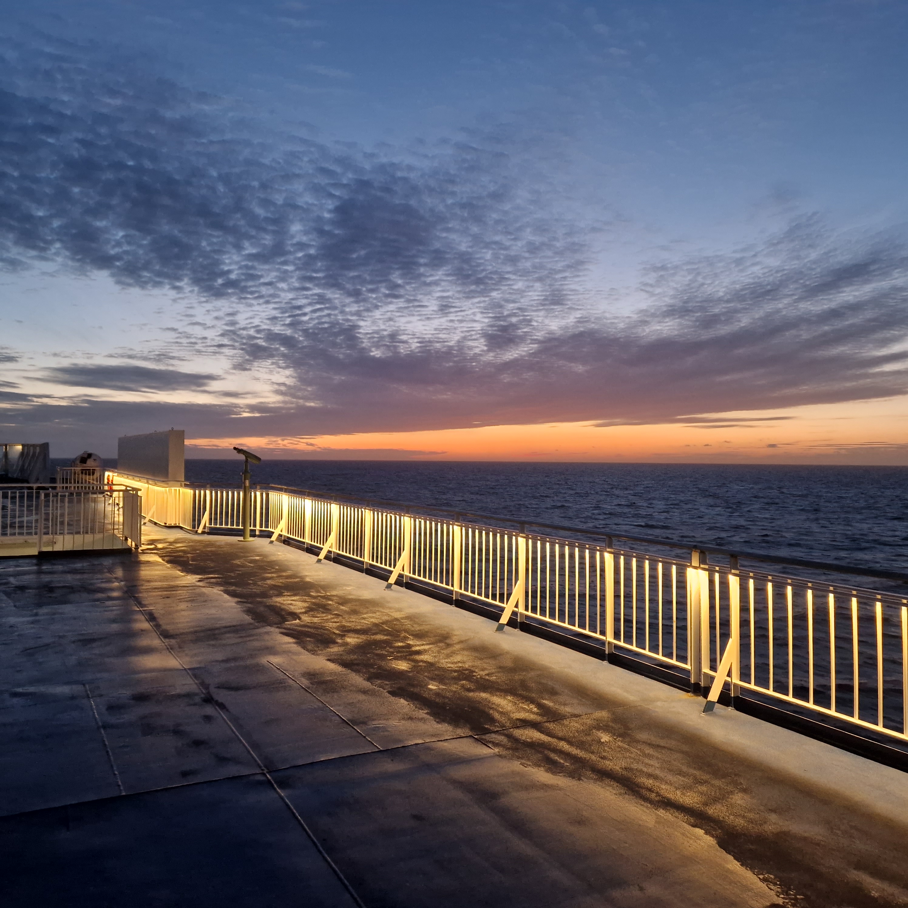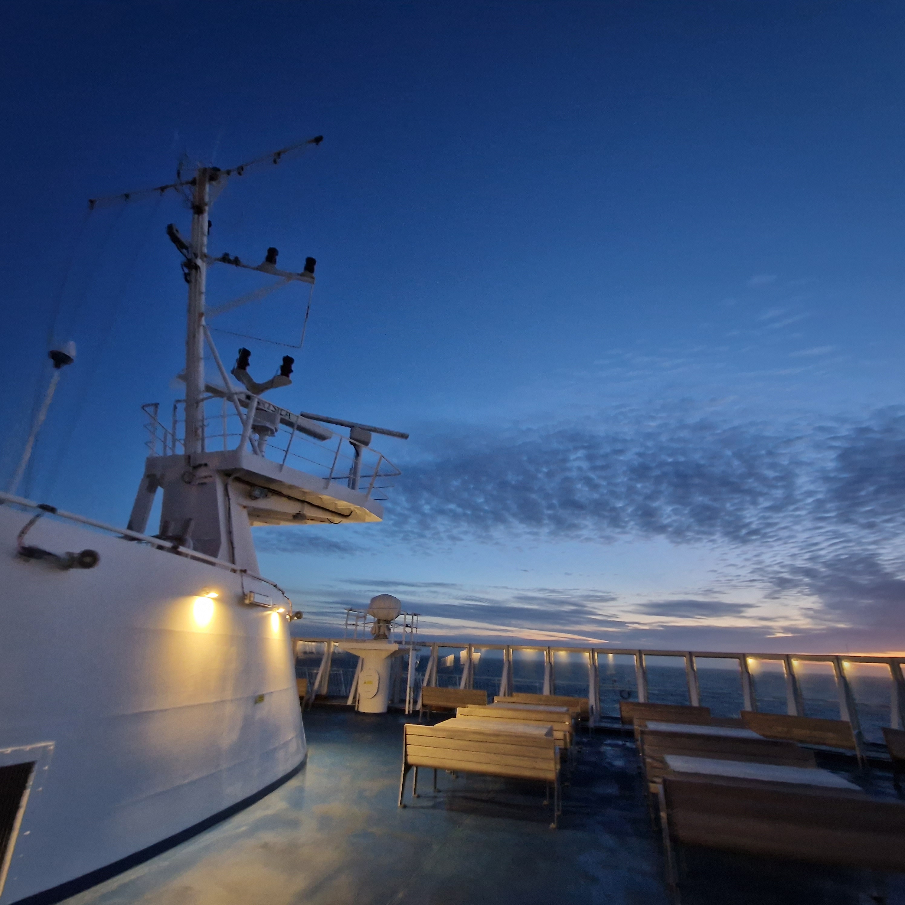 Abgesehen von davon das es echt viele Menschen hier auf dem Schiff sind war die Überfahrt angenehm. Wir hatten immer leichten bis mäßigen Seegang. Glücklicherweise ohne dass einem von uns schlecht wurde. Den Seegang hat man aber ordentlich gemerkt.